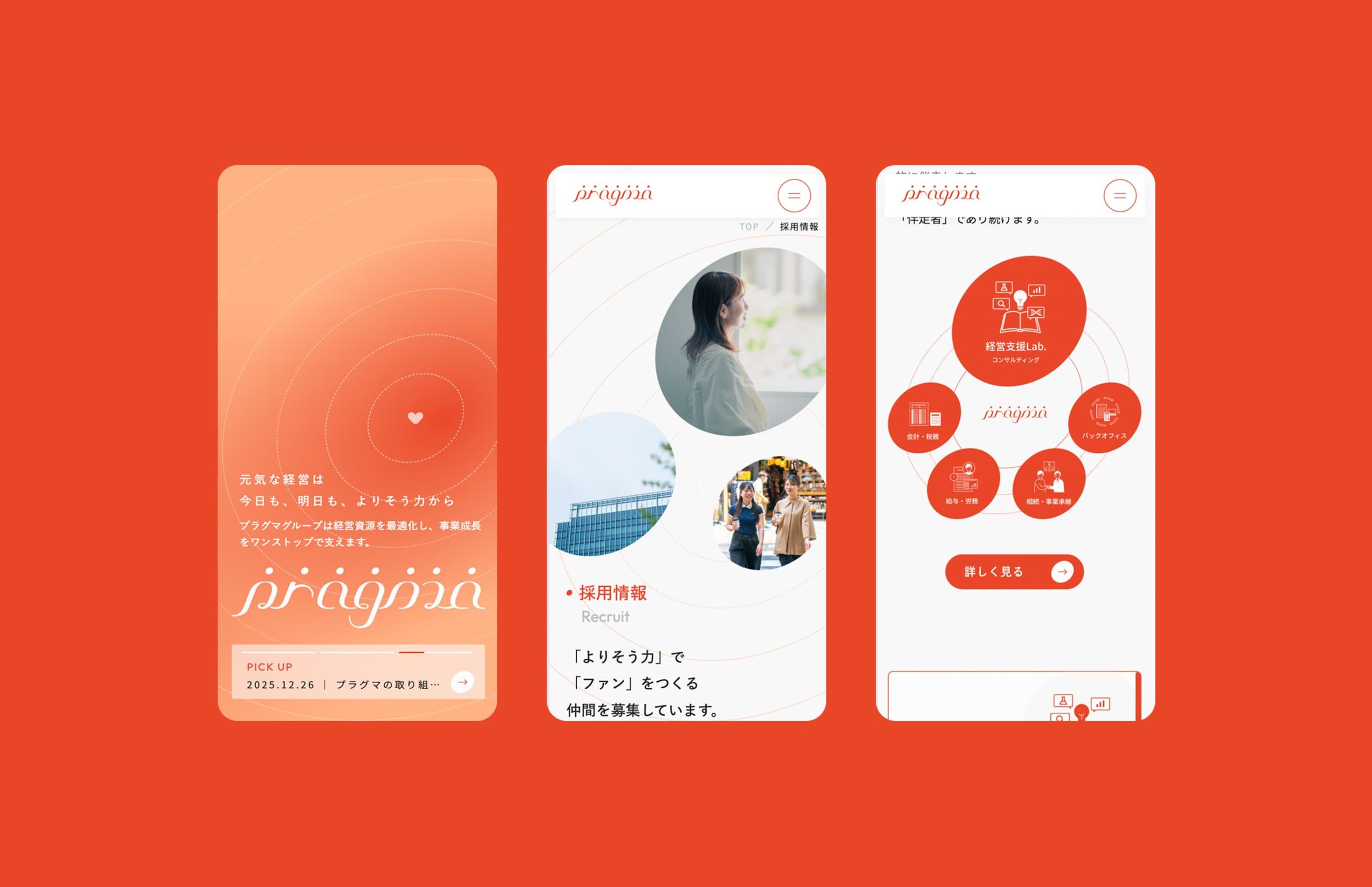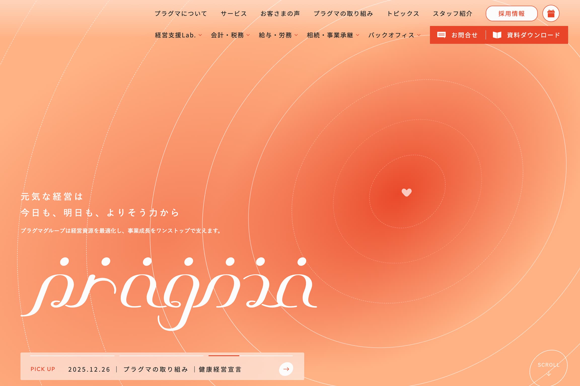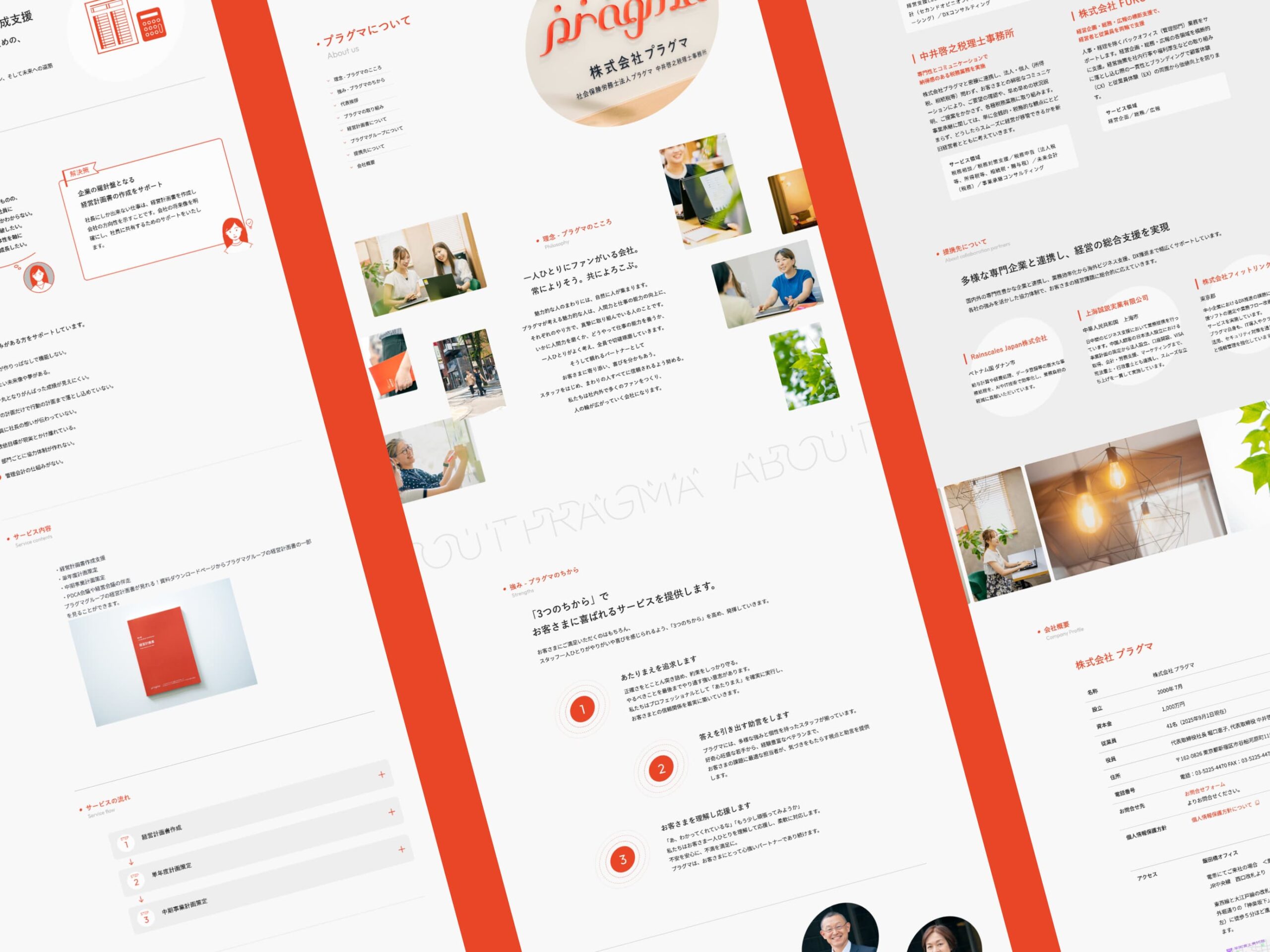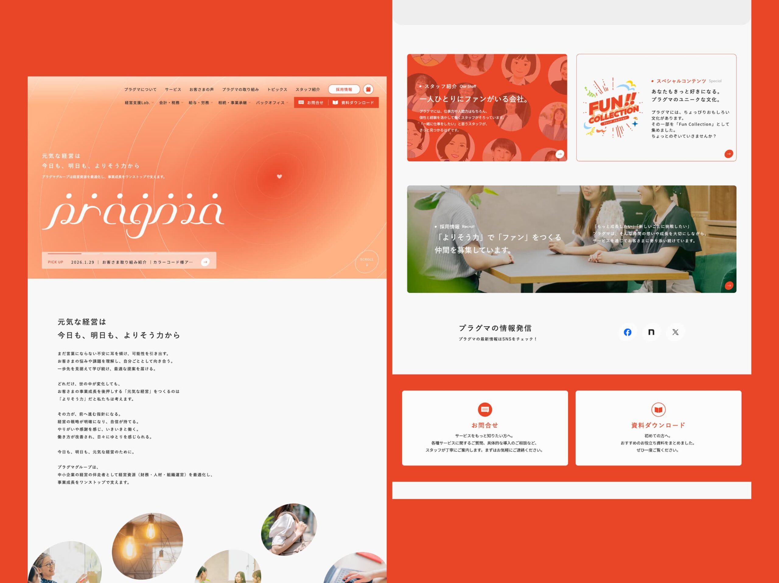 会計・税務のアウトソーシングをはじめ、相続や事業承継といった分野から経営支援まで、企業や個人に寄り添った支援を行うプラグマ。今回のリニューアルでは、「人と人とのつながり」や「伴走する姿勢」といった同社の価値観と、複雑なサービス内容の整理と情報設計を軸に構築しました。