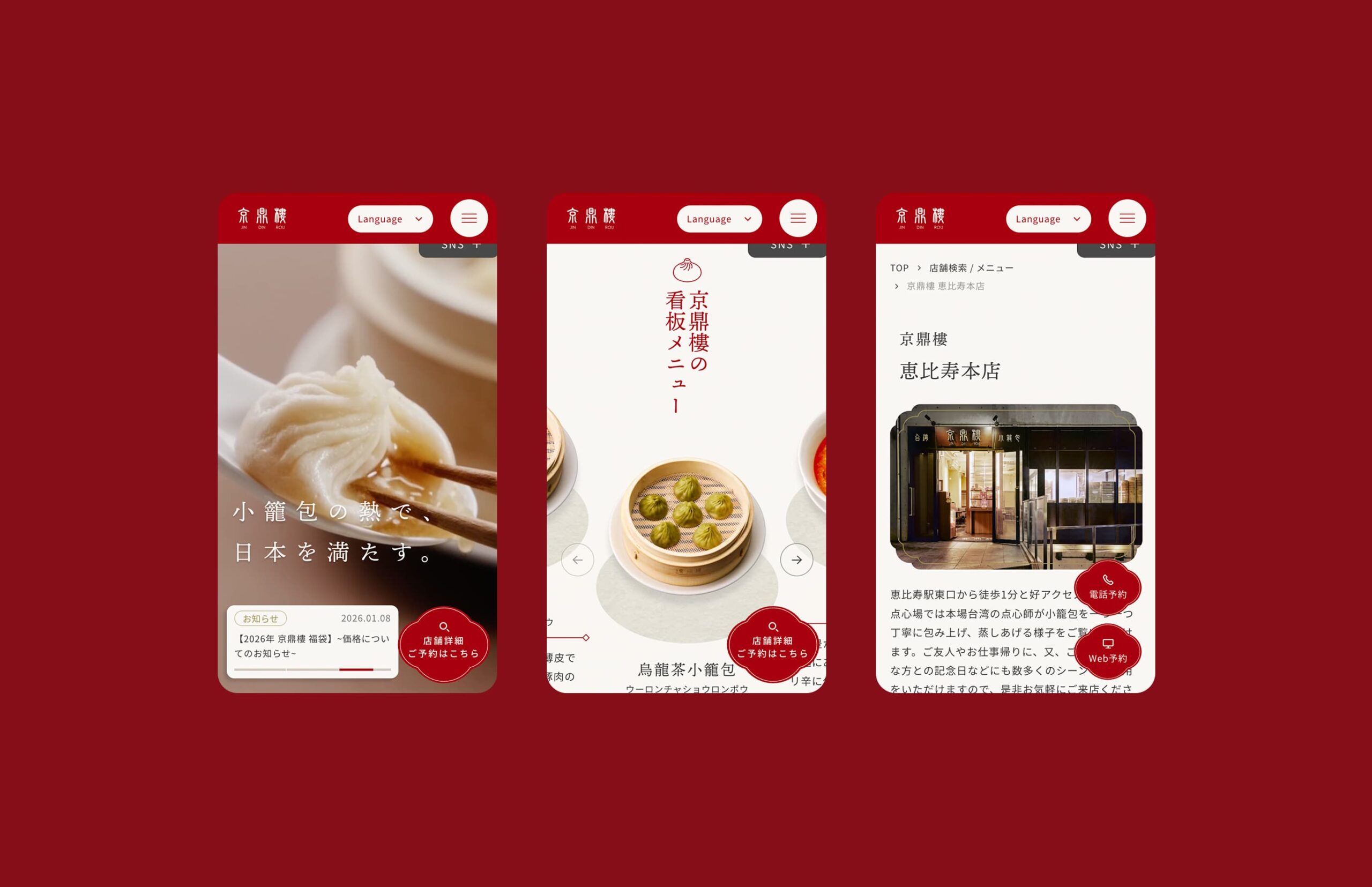 全国展開する小籠包レストラン京鼎樓のWebサイトリニューアルを担当しました。